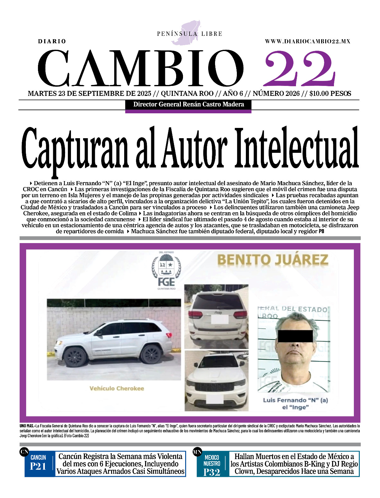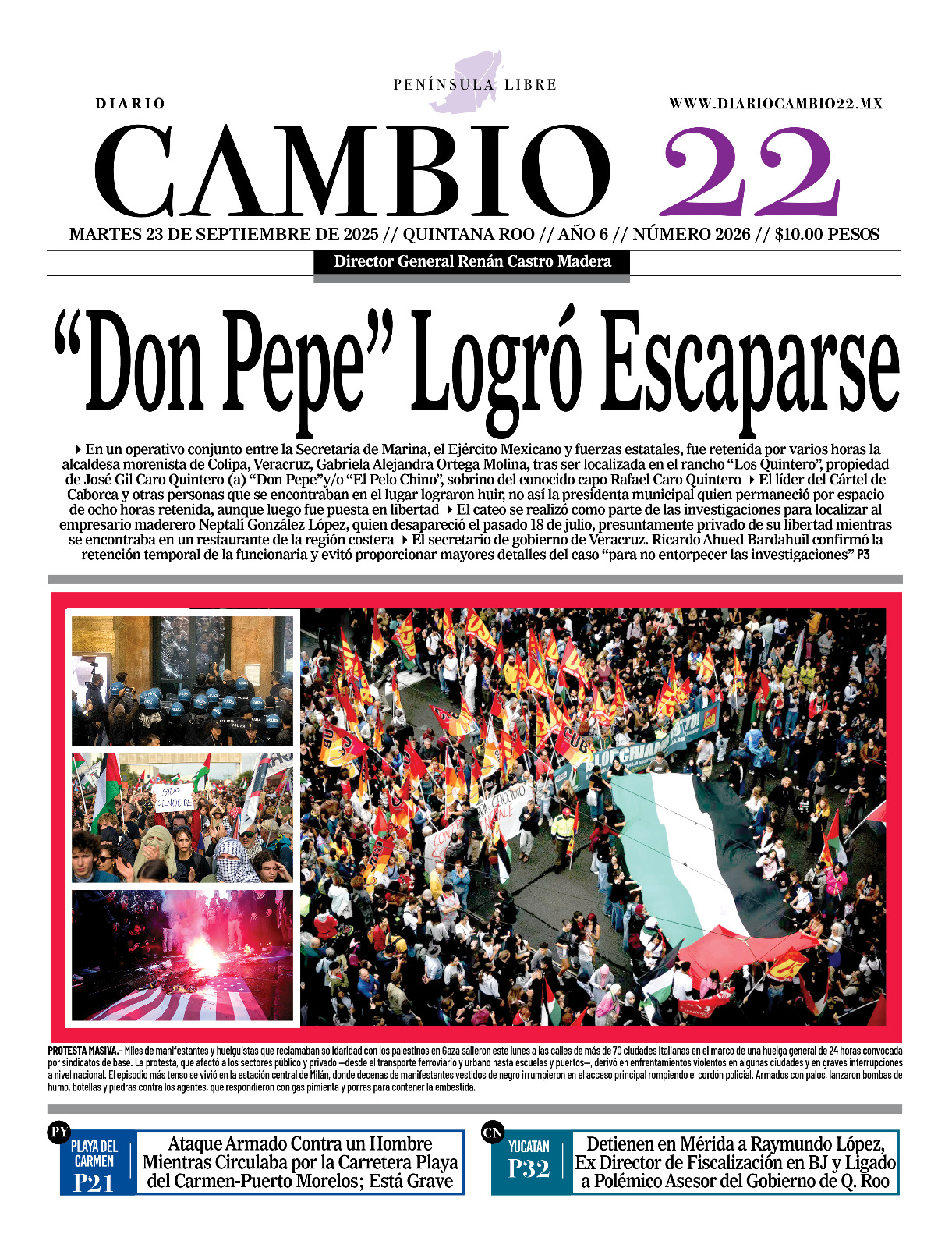 Portadas del Periódico CAMBIO 22 en su Edición Impresa del 23 de Septiembre de 2025