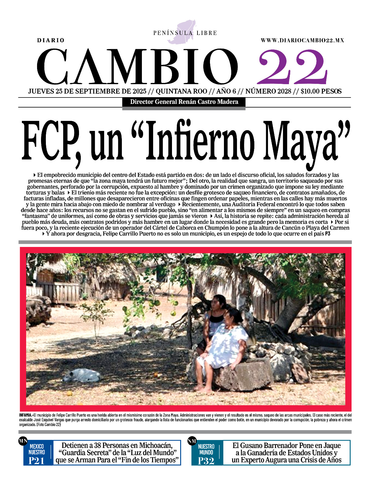 Portadas del Periódico CAMBIO 22 en su Edición Impresa del 25 de Septiembre de 2025