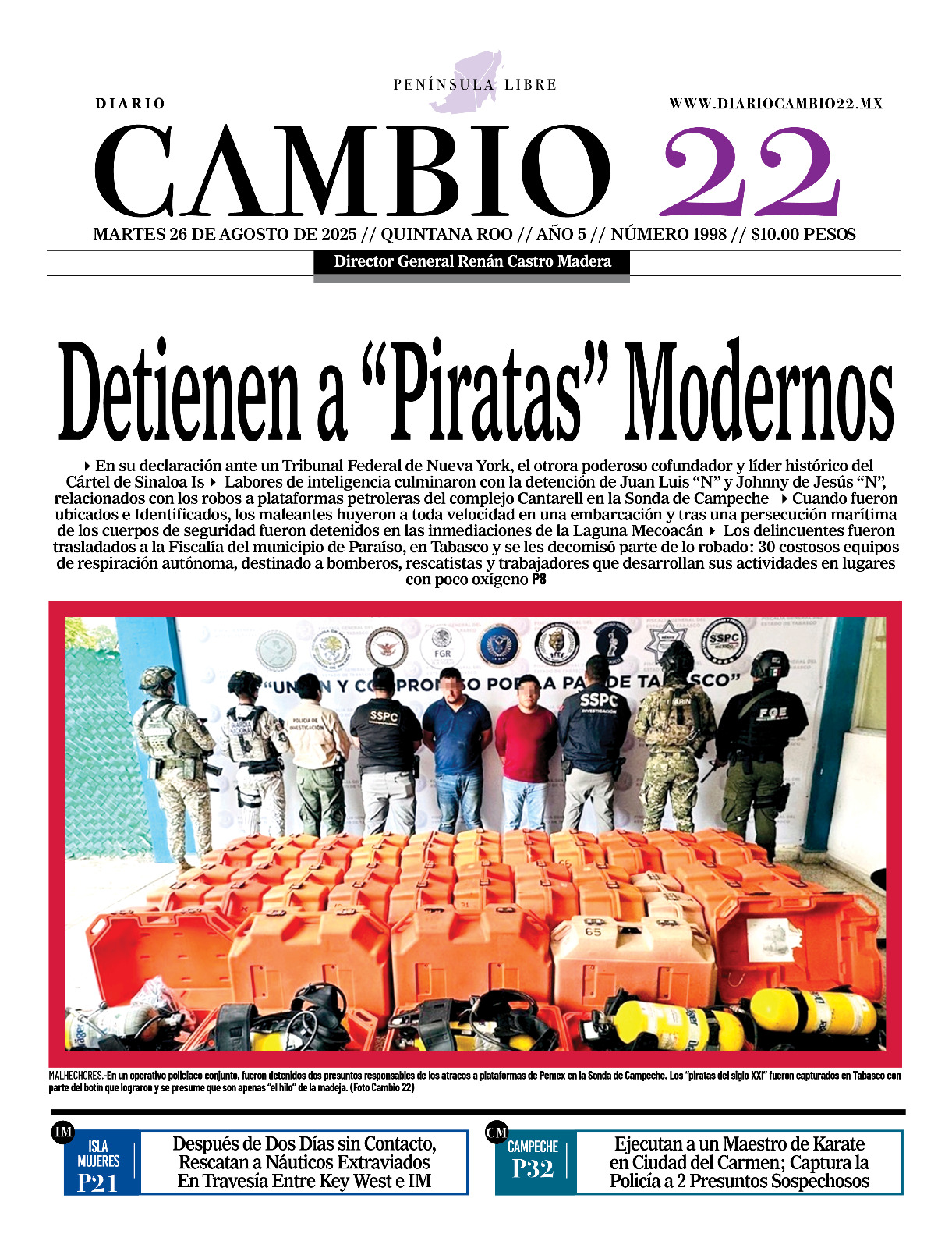 Portadas del Periódico CAMBIO 22 en su Edición Impresa del 26 de Agosto de 2025