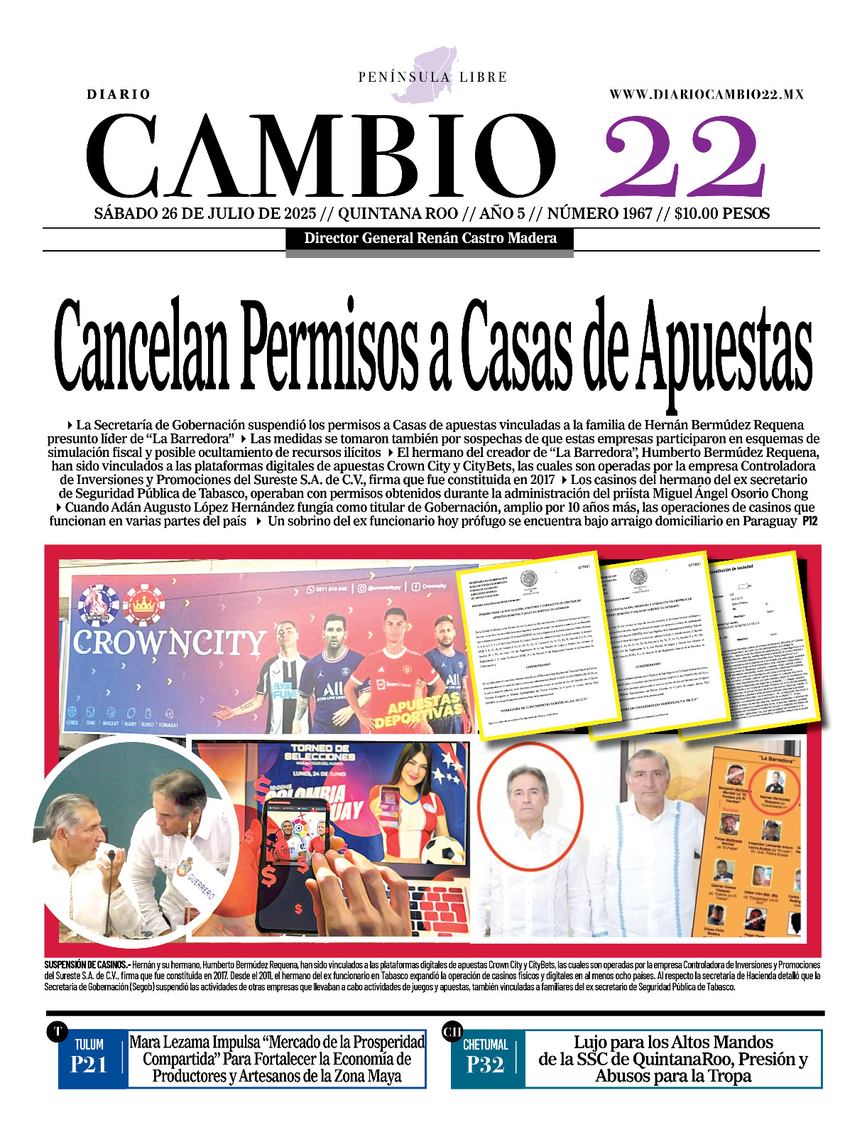 Portadas del Periódico CAMBIO 22 en su Edición Impresa del 26 de Julio de 2025