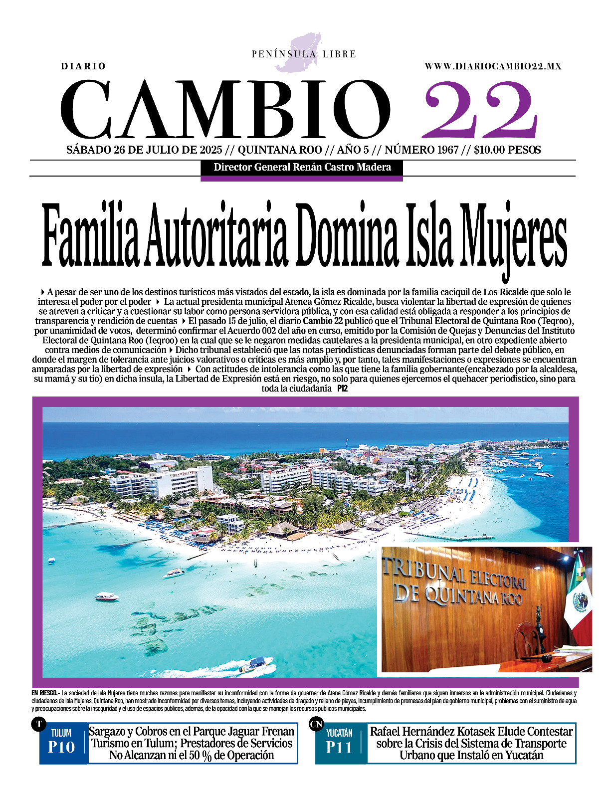 Portadas del Periódico CAMBIO 22 en su Edición Impresa del 26 de Julio de 2025