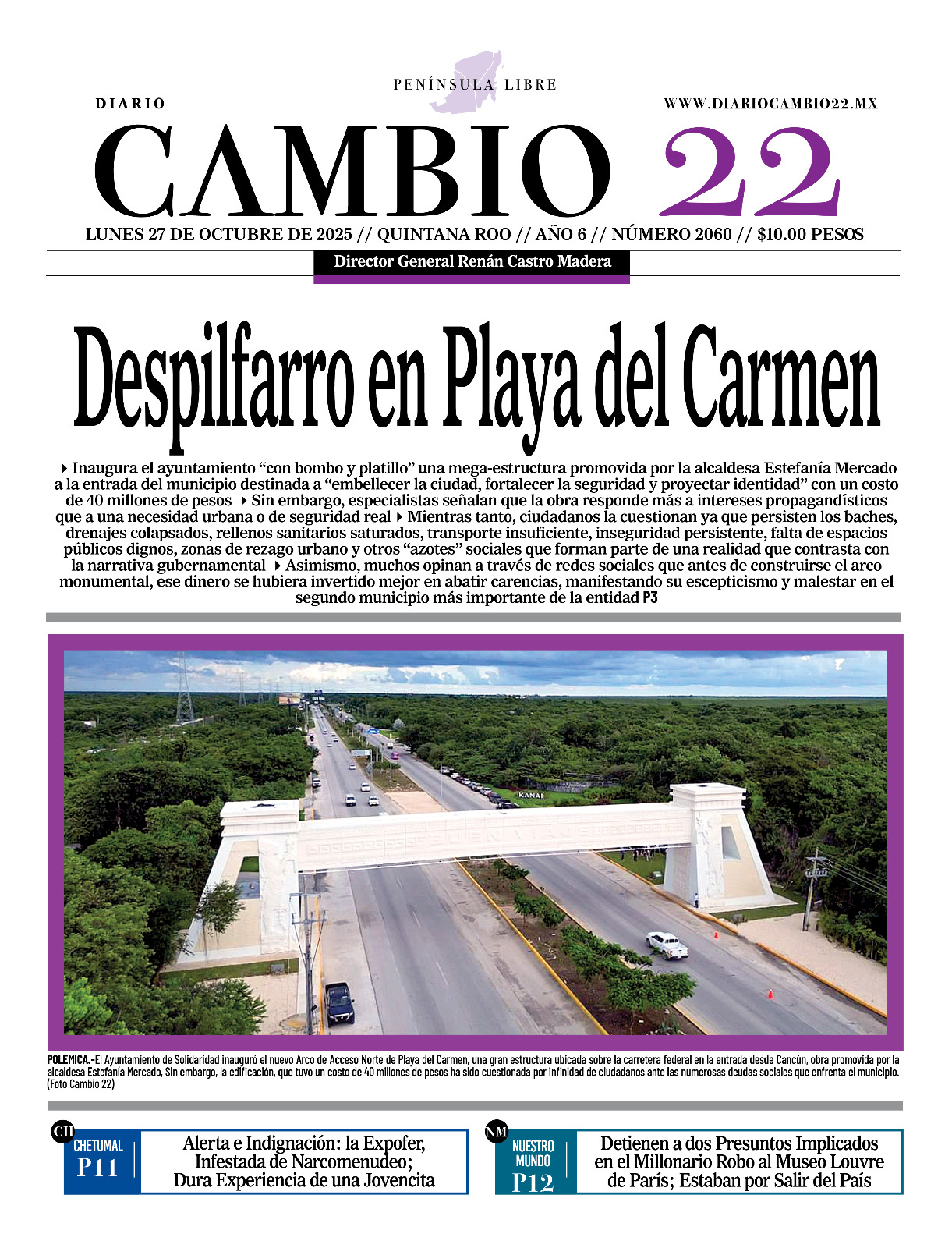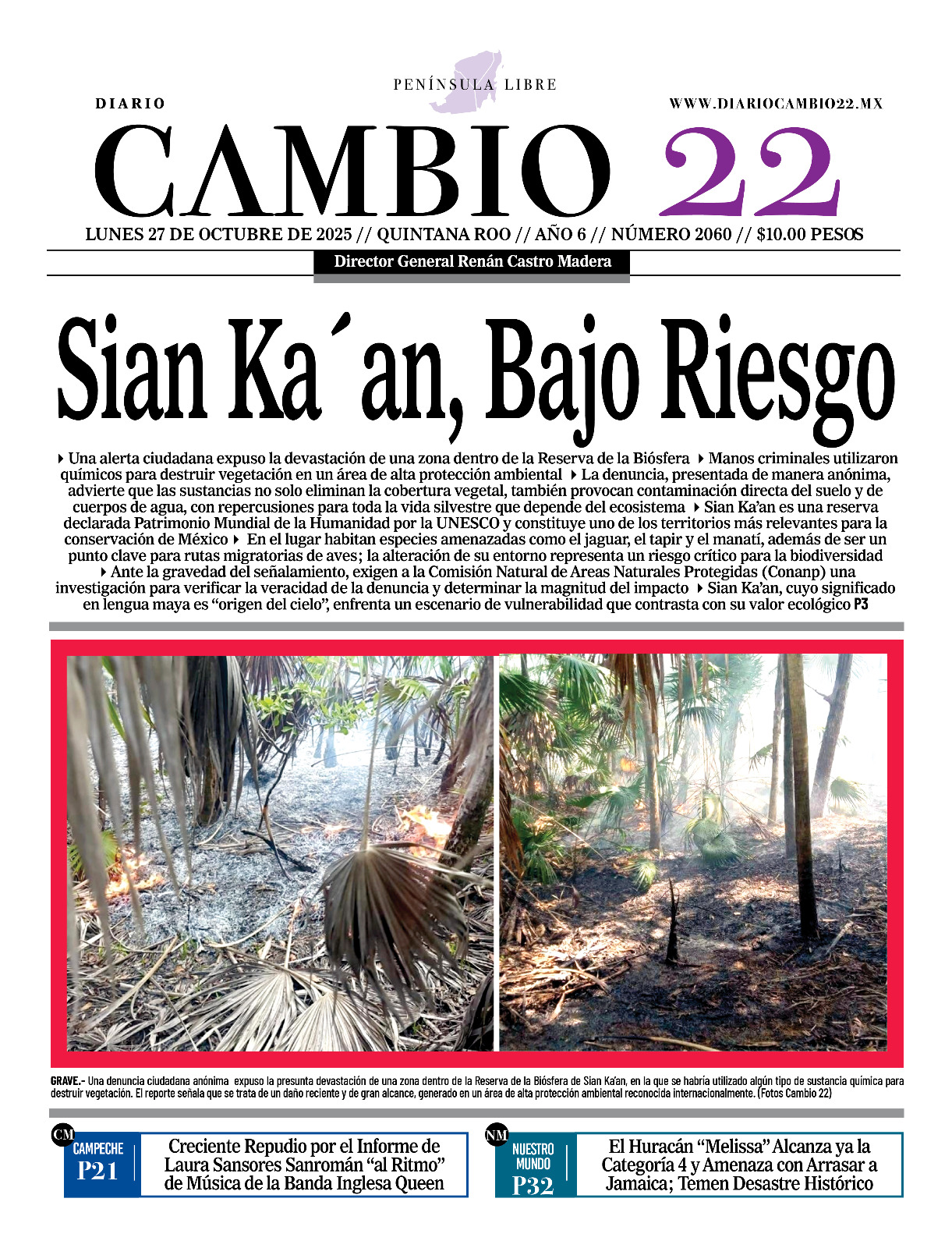 Portadas del Periódico CAMBIO 22 en su Edición Impresa del 27 de Octubre de 2025