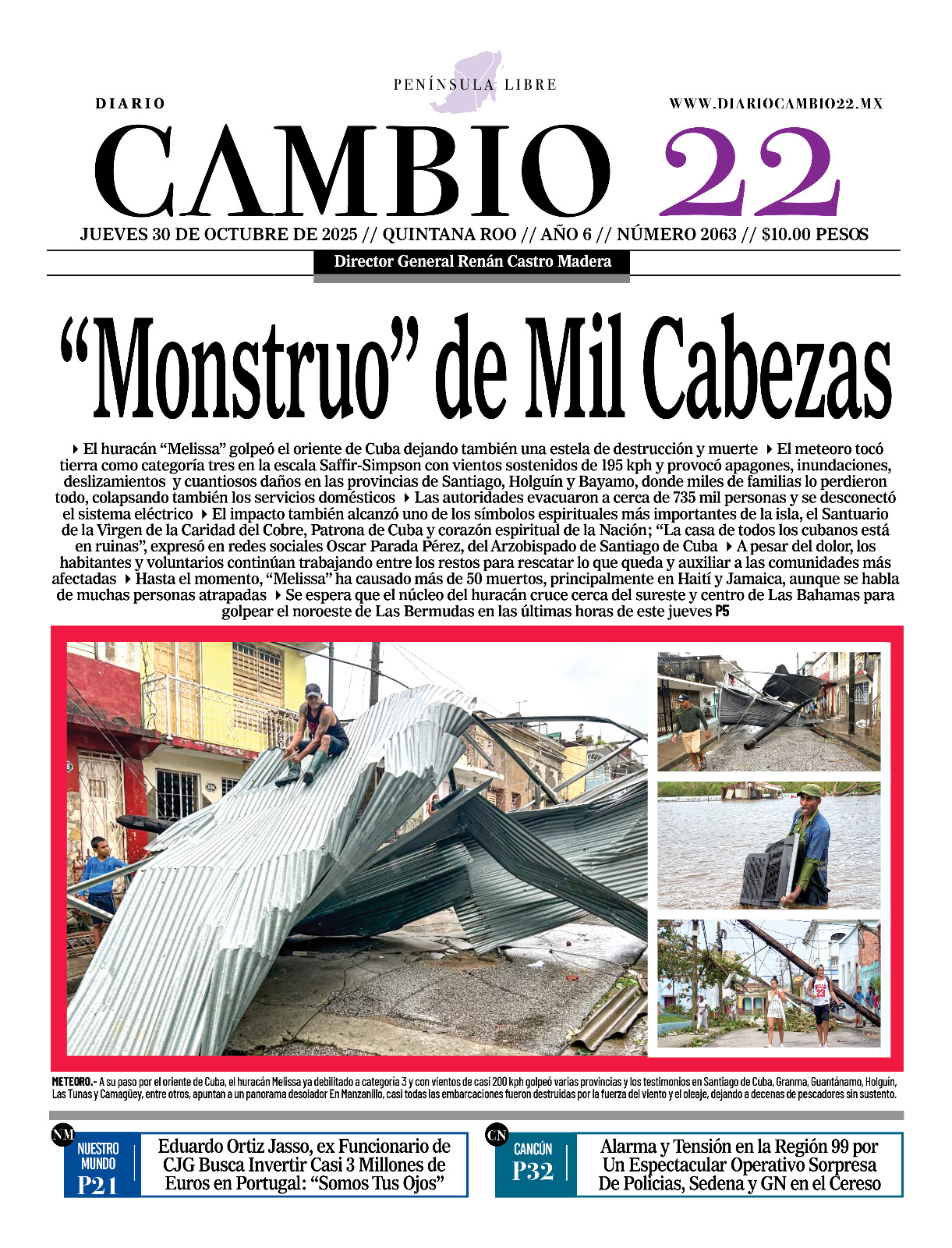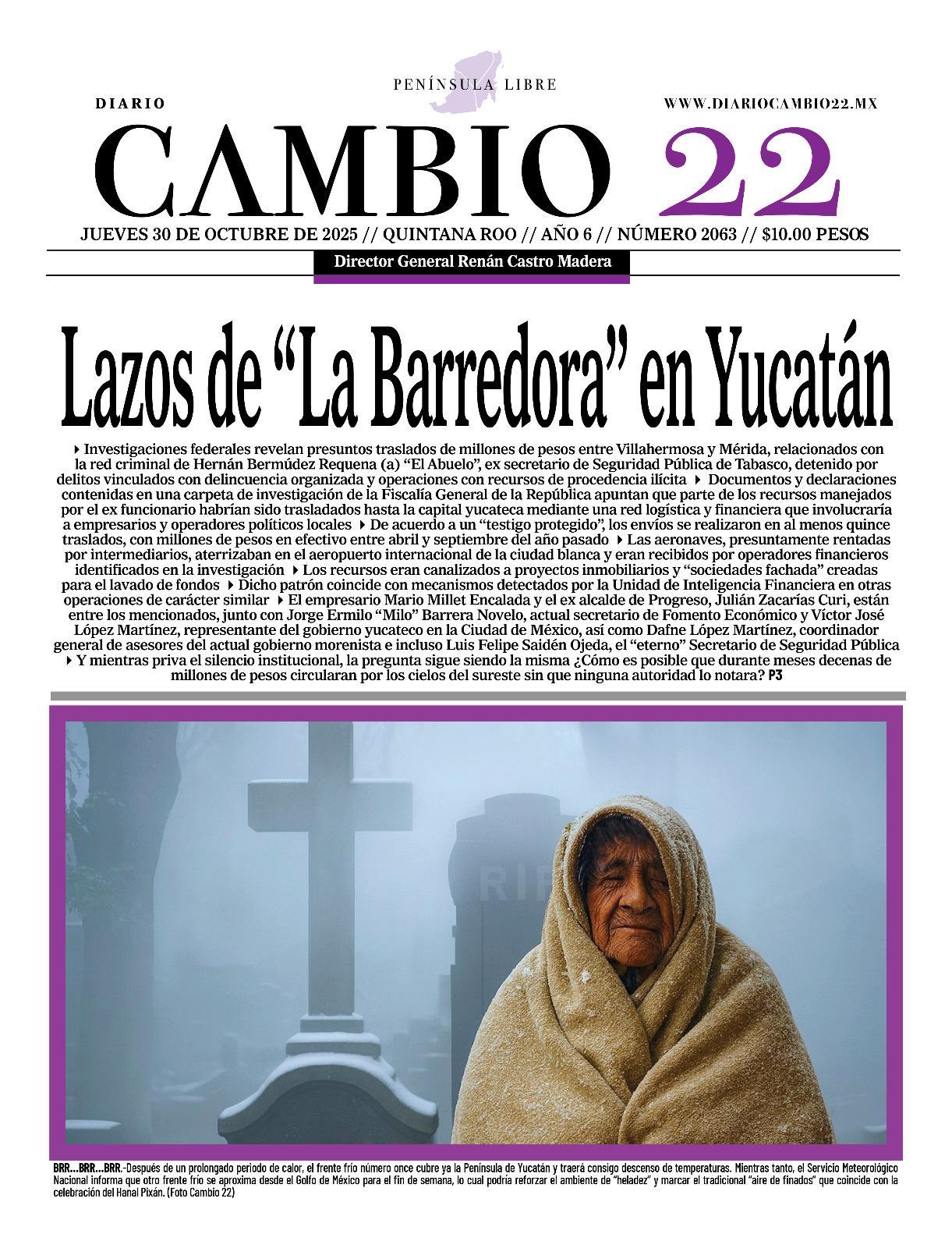 Portadas del Periódico CAMBIO 22 en su Edición Impresa del 30 de Octubre de 2025