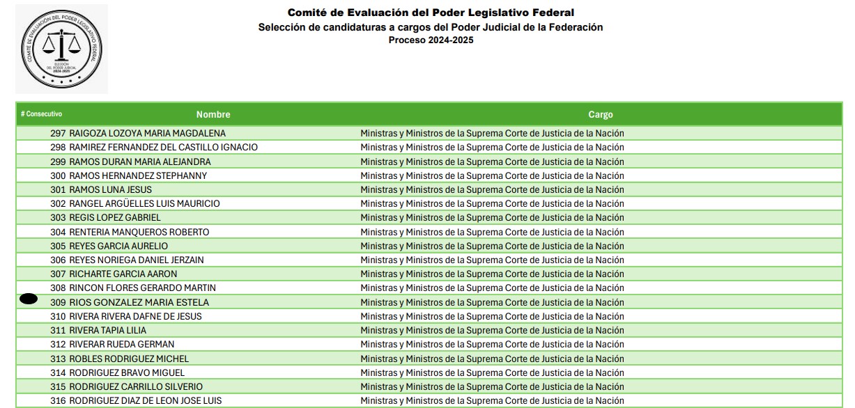El Comité de Evaluación de los tres poderes de la Unión darán a conocer el 15 de diciembre la lista definitiva de aspirantes que cumplen con los requisitos constitucionales, legales y de elegibilidad, mismos que pasarán a la siguiente etapa, en la cual se determinará la idoneidad de los aspirantes.