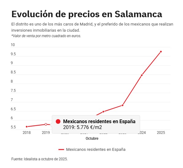 México concentra 56% de la inversión latinoamericana en bienes raíces españoles y lidera adquisiciones en zonas premium como Salamanca, donde el metro cuadrado supera los 9,700 euros