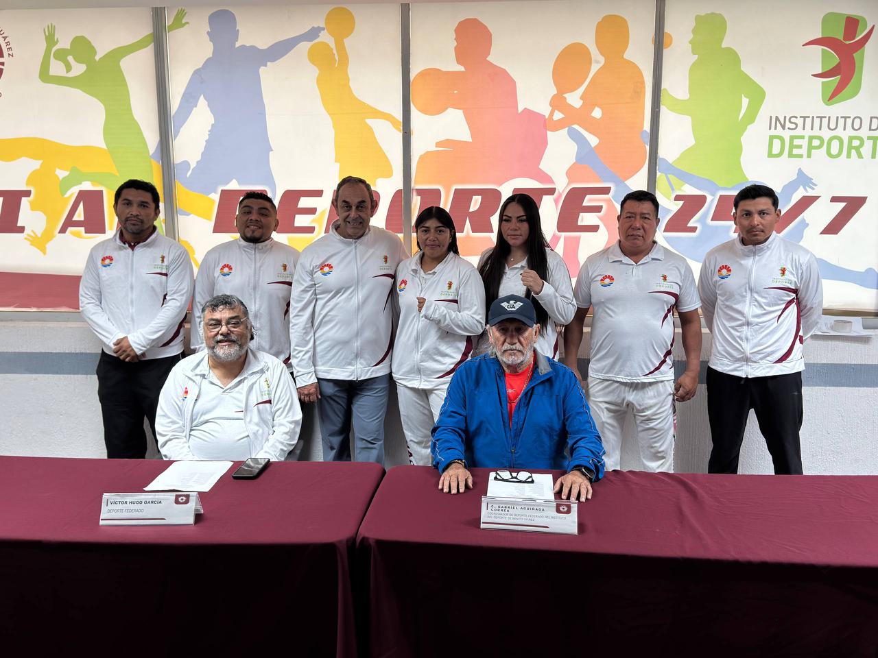 La conferencia fue encabezada por Gabriel Aguiñaga, coordinador de Deporte Federado del Instituto del Deporte, en compañía de Víctor Hugo García, coordinador técnico de boxeo.
