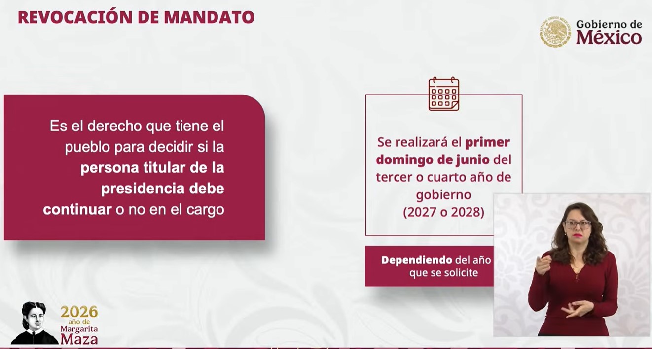 – La revocación de mandato podrá ser el primer domingo de junio en el tercer o cuarto año de gobierno.