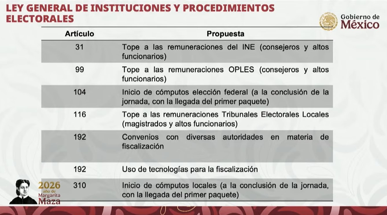 También presentará reformas a la legislación secundaria electoral, insistiendo en adelantar los cómputos definitivos de las elecciones