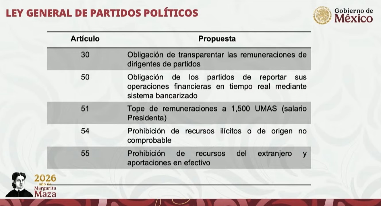 En la Ley General de Partidos Políticos, los cambios propuestos son:
