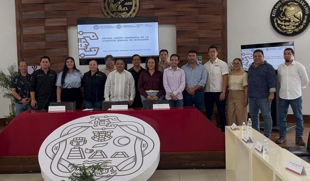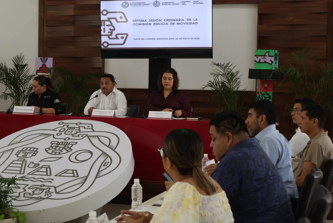 Playa del Carmen, a 23 de mayo de 2025.- Durante la séptima sesión de trabajo de la Comisión Edilicia de Movilidad, el regidor Javier Renán Santos Morales, presidente de dicha comisión y sexto regidor del Ayuntamiento de Playa del Carmen, presentó el Plan Integral de Movilidad Urbana Sustentable (PIMUS), una propuesta estratégica que busca transformar la movilidad en el municipio de cara a su acelerado crecimiento poblacional.