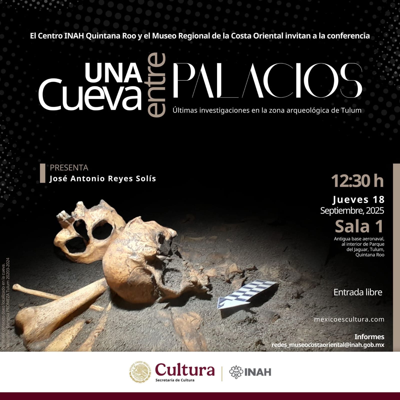 TULUM a 9 de septiembre.– El Instituto Nacional de Antropología e Historia (INAH) anunció la conferencia “Una cueva entre palacios: últimas investigaciones en la Zona Arqueológica de Tulum”, en la que se darán a conocer hallazgos recientes derivados del Programa de Mejoramiento de Zonas Arqueológicas (PROMEZA) 2023-2024.