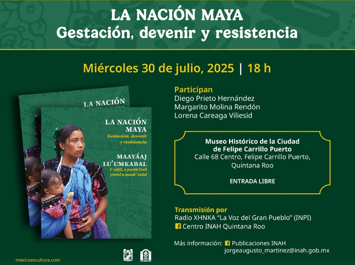CHETUMAL, 24 de julio.- El Instituto Nacional de Antropología e Historia (INAH) presentará en Felipe Carrillo Puerto un libro especial dedicado al devenir de los mayas desde su civilización antigua hasta la actualidad.