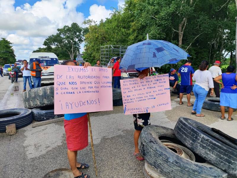 Para que la CFE hiciera su trabajo fue necesario que los usuarios protestaran cerrando el tránsito vehicular sobre la Carretera Federal 186, tramo Escárcega-Chetumal, con las afectaciones que ésto conlleva para los usuarios de la vía.