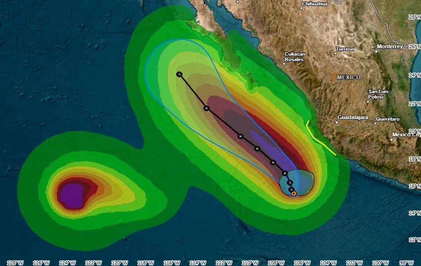 Por otro lado, en el pronóstico de su trayectoria se espera que su núcleo se mueva en alta mar y en paralelo a la costa suroeste de México hasta principios de la próxima semana.