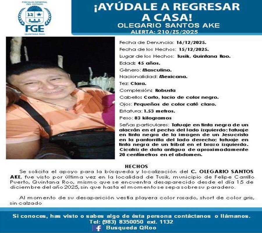 Del interior del domicilio sacaron por la fuerza a Olegario Santos Aké, de 45 años de edad, conocido en la comunidad por dedicarse al oficio de taquero. Sin oponer resistencia, la víctima fue obligada a subir a un vehículo de color negro, en el cual los agresores se retiraron con rumbo desconocido, sin proporcionar datos claros sobre el motivo de su actuar.