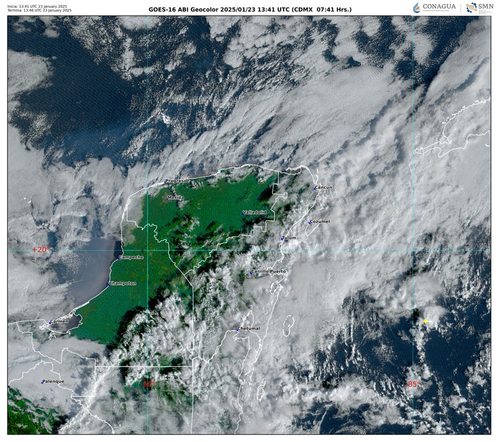 La sinopsis meteorológica para Quintana Roo indica que el ingreso de humedad del mar Caribe, aunado a la masa de aire frío que impulsó al frente número 24, localizado sobre el occidente del mar Caribe con características de estacionario, propiciarán cielo medio nublado a nublado durante el día e intervalos de chubascos con lluvias puntuales fuertes, de 25 a 50 mm, sobre la mayor parte del estado.