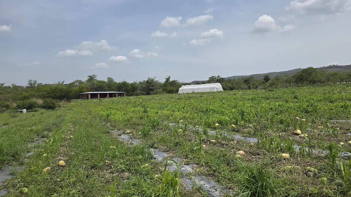 “Aquí estamos en un cultivo de chile habanero, pero está atrofiado por las condiciones climáticas. Al inicio de la temporada de lluvias cayó una granizada intensa que dañó cultivos de sandía y melón que estaban por cosecharse”, explicó el productor.