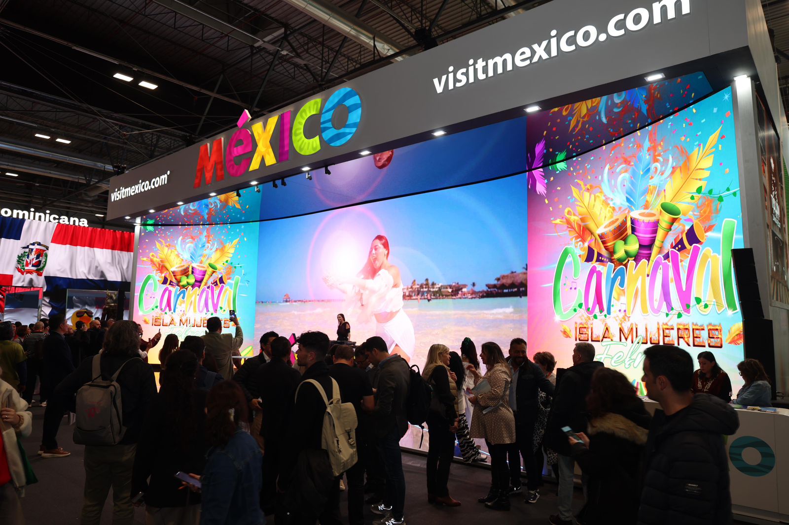 En la pantalla gigante, ubicada en la entrada principal del Pabellón de México, cientos de tour operadores, agencias de viajes, aerolíneas y grupos hoteleros internacionales, pudieron conocer de primera mano la esencia del icónico carnaval.
