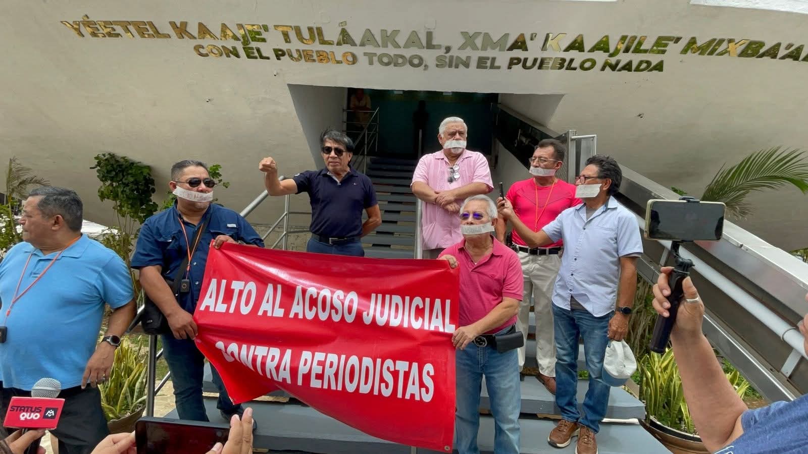 En la plataforma digital de La Barra Noticias, cada uno de los tres comunicadores leyeron el texto en que el Tribunal Electoral Estatal consideró que le habían causado ofensas a la gobernadora morenista Layda Sansores.