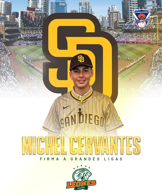 “¡DE LA ACADEMIA A LOS PADRES! Orgullosamente formado y egresado de la Academia de Beisbol del Pacífico, el oriundo de Actopan, Veracruz, Michel Cervantes se convirtió en miembro de los Padres de San Diego”, se lee en el comunicado que los Leones de Yucatán publicaron en sus redes sociales.