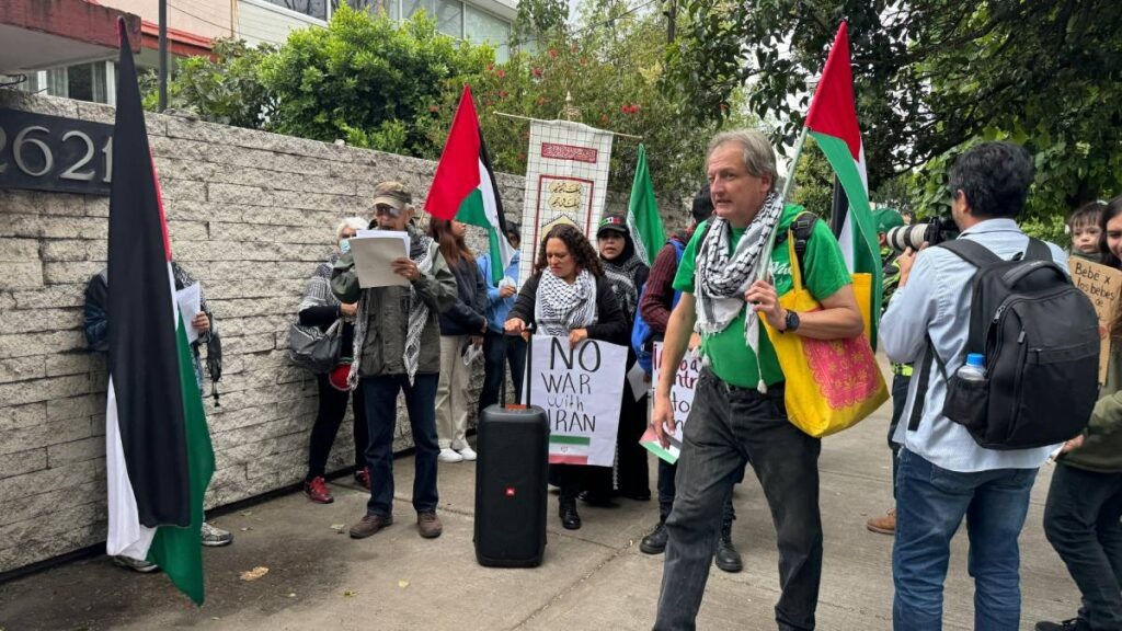 Con banderas palestinas e iraníes, activistas manifestaron este sábado su rechazo a los ataques de Israel contra Irán y Palestina y demandaron que el gobierno de México rompa relaciones con el gobierno israelí.