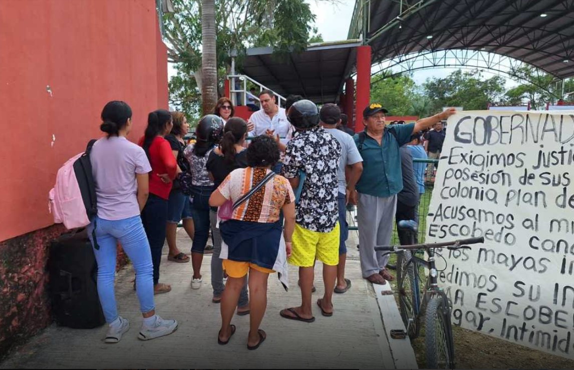 “Gobernadora Mara Lezama, exigimos justicia para las familias que tienen la posesión de sus predios, desde hace años en la colonia Plan de Ayutla. Acusamos al ministerio público y a la señora Irma Escobedo Canales de violar los derechos de los mayas indígenas”, se leía en una de las mantas que expusieron los colonos.