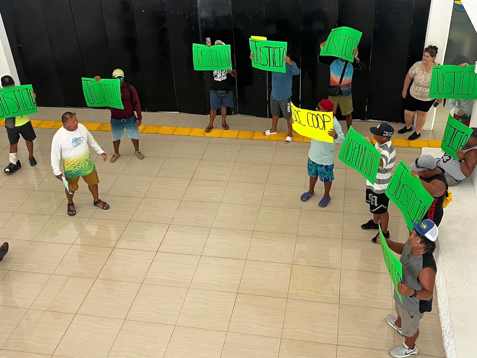 Cancún, Quintana Roo, 30 de Junio del 2025.- Este lunes, miembros de la Sociedad Cooperativa Independiente de Puerto Juárez se concentraron en la explanada del Palacio Municipal de Benito Juárez para exigir la reapertura de sus instalaciones, que fueron clausuradas hace aproximadamente un mes y medio.