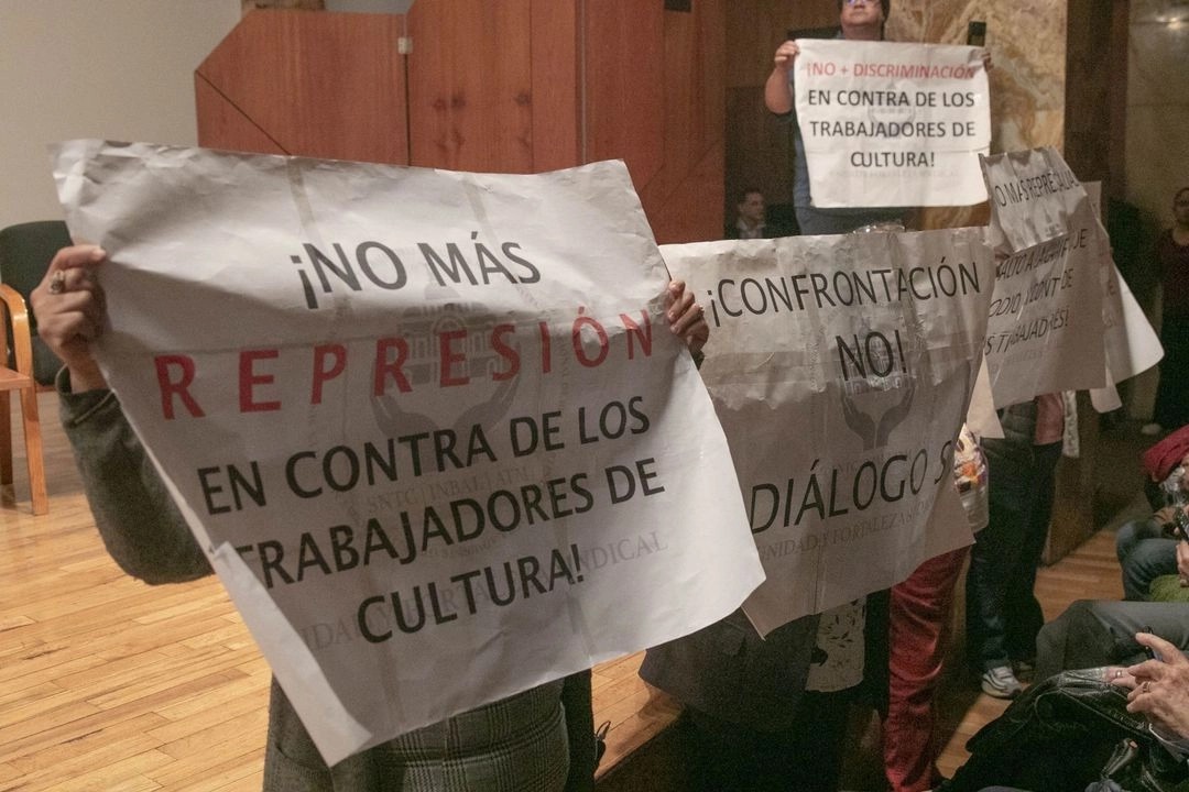 Tras unos minutos de manifestación, los inconformes organizaron una comisión que ingresó a las oficinas de la Secretaría de Cultura para solicitar la instalación de una mesa de trabajo que permita dar respuesta institucional a sus demandas.