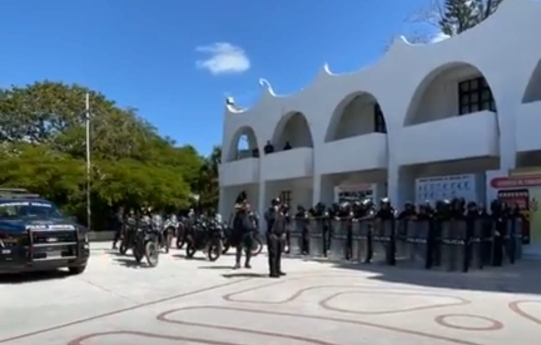 Ante la protesta, el gobierno municipal desplegó grupos antimotines de la Policía Municipal y de la Marina Armada de México para contener a los vendedores.