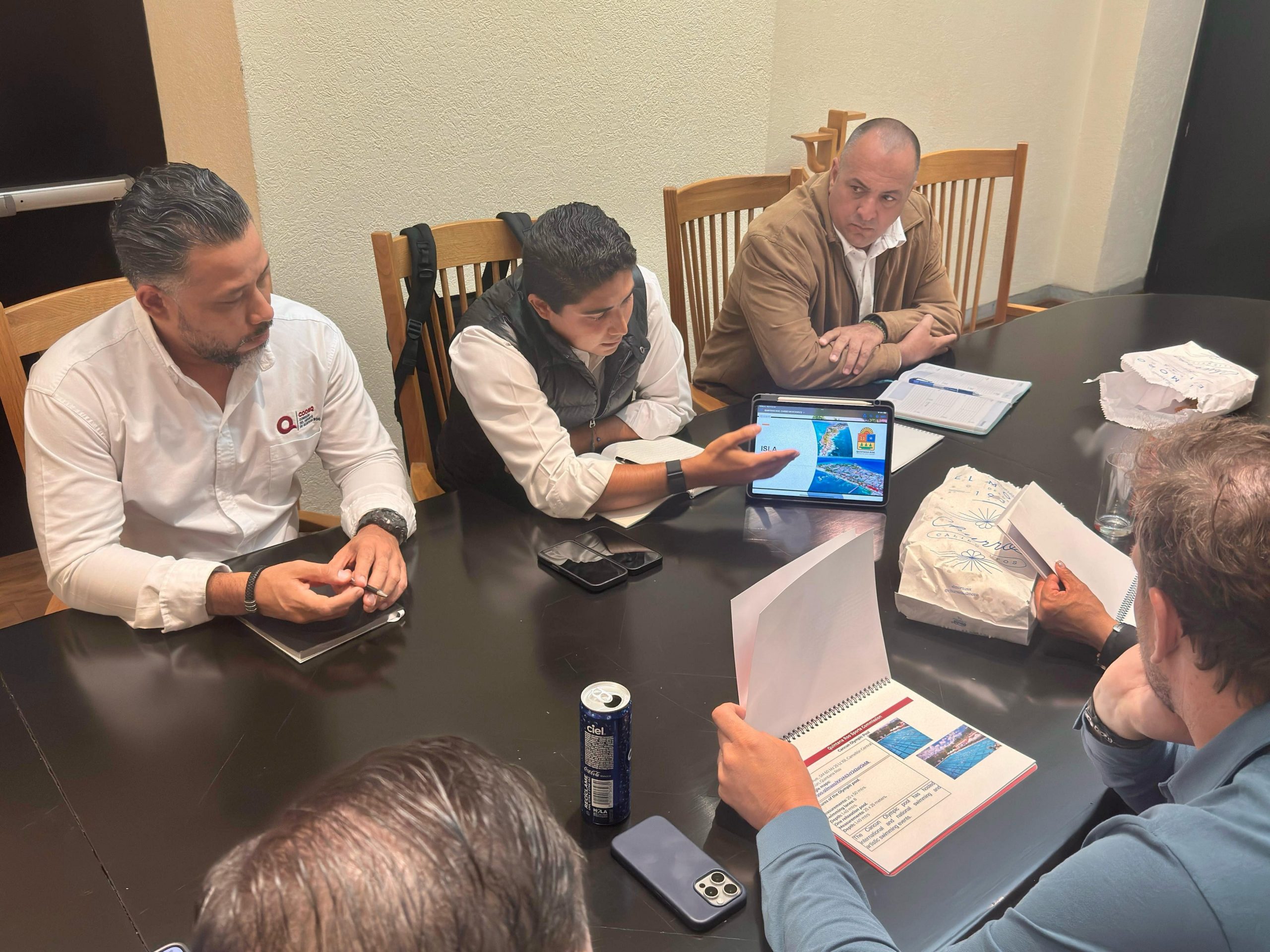 El presidente de la CODEQ, Jacobo Arzate Hop, se reunió en Ciudad de México con directivos del COM y de la organización World Aquatics, para planear acciones a favor de realizar competencias que aporten al impulso del turismo deportivo