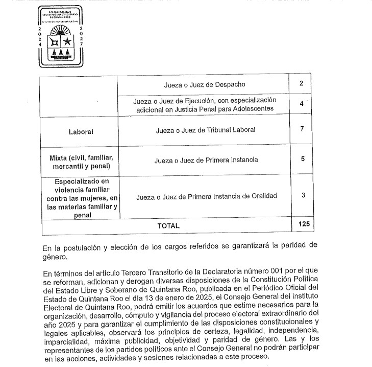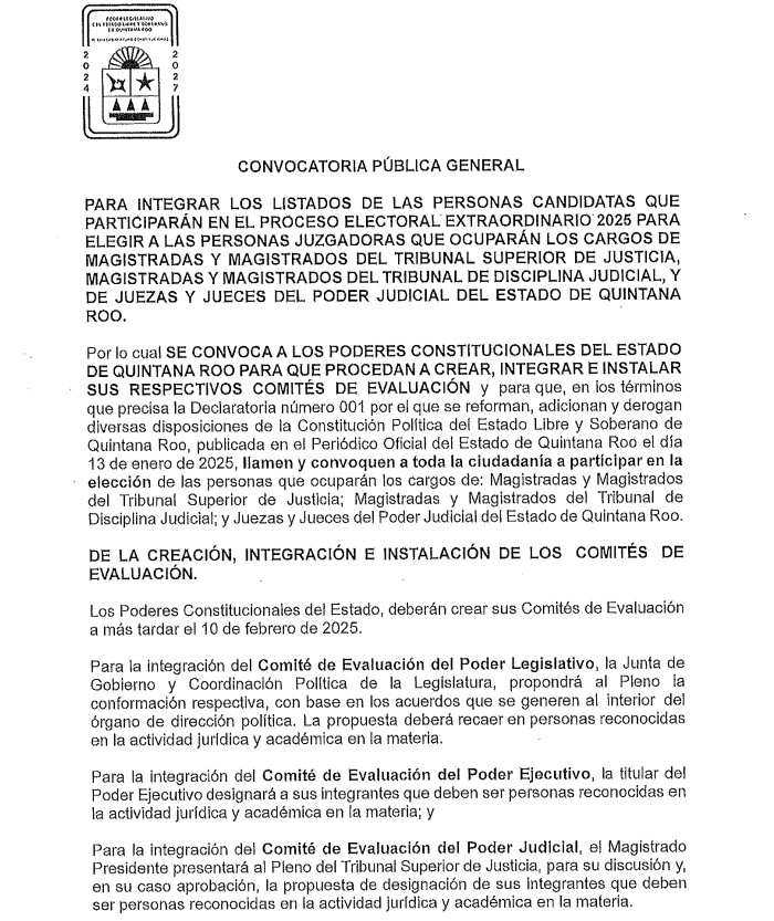 Publica el Congreso de Quintana Roo la Convocatoria Para la Elección del Poder Judicial del Estado
