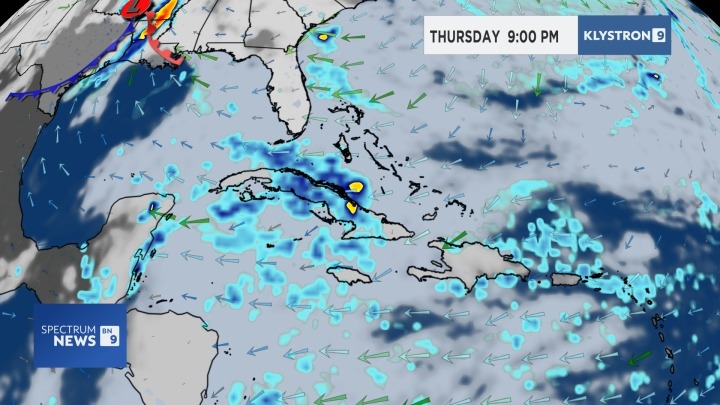 Sinopsis Meteorológica: Sistema de Alta Presión localizada al norte de los Grandes Lagos sobre Canada; forma una Cuña débil de Alta Presión que se extiende hasta la Península de Yucatán e impulsa, vientos del este de 18 a 27 kph con rachas de 35 kph, nos mantiene las temperaturas, con lluvias ligeras a moderadas que no serán muy importantes.