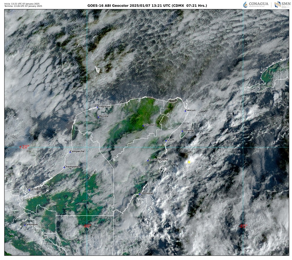 El frente frío # 21 se extenderá sobre la península de Yucatán y ocasionará en Quintana Roo cielo medio nublado a nublado en el trascurso del día y lluvias con intervalos de chubascos sobre algunas zonas del estado.