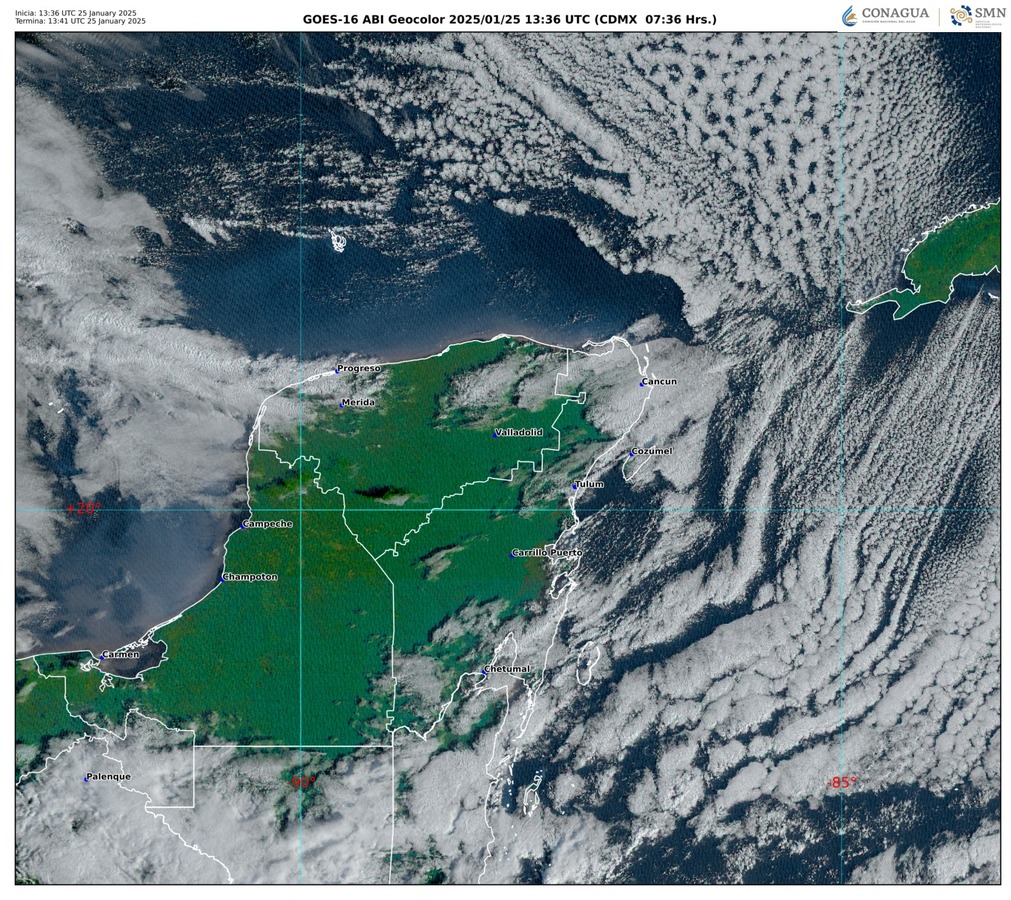 Co base en la sinopsis meteorológica, el ingreso de humedad del mar Caribe propiciará en Quintana Roo cielo despejado a medio nublado con lluvias aisladas de 0.1 a 5 mm en zonas de la entidad.