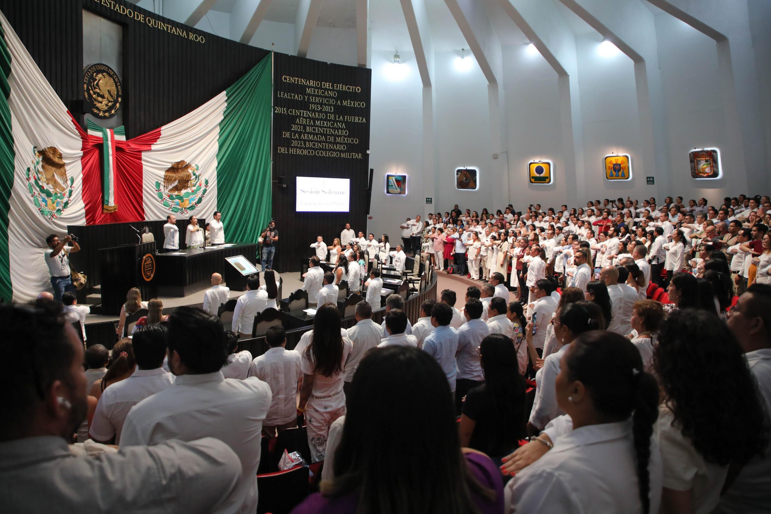 La presea fue entregada por la presidenta de la Mesa Directiva Luz Gabriela Mora Castillo, el secretario de Ecología y Medio Ambiente Oscar Rébora Aguilera en representación de la gobernadora Mara Lezama y el magistrado Heyden Cebada Rivas, presidente del Tribunal Superior de Justicia del Estado, quienes fueron recibidos por el Diputado Presidente de la Junta de Gobierno y Coordinación Política, Jorge Sanén.