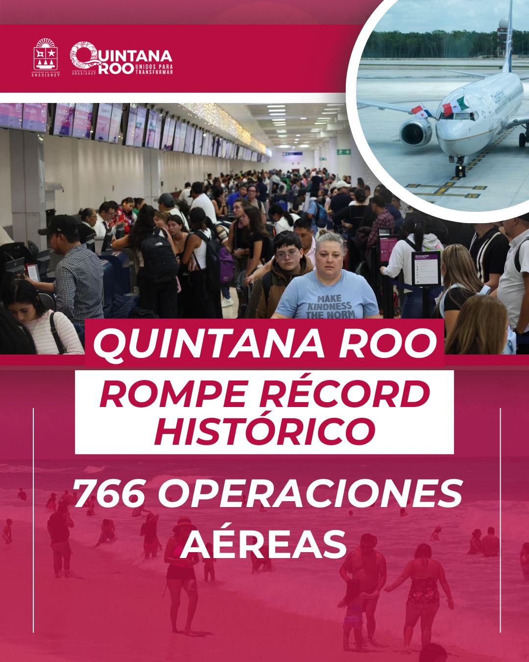 “Hoy Quintana Roo está rompiendo un récord histórico en conectividad aérea. Más de 766 operaciones en un solo día, en los cuatro aeropuertos del estado, Cancún, Tulum, Cozumel y Chetumal, una cifra sin precedentes”, expresó.