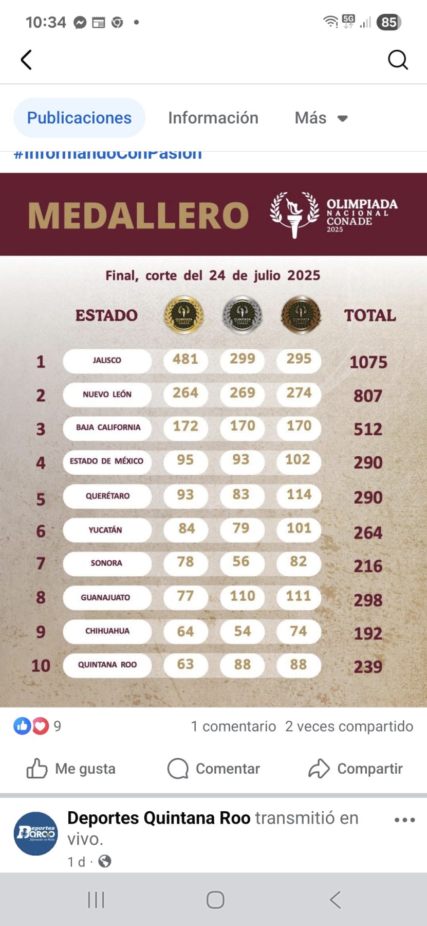 A continuación presentamos la tabla general de la Olimpiada Nacional 2025 y el comparativo de las últimos tres años para el Deporte de Quintana Roo: