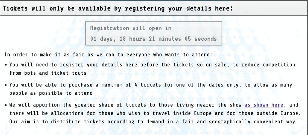 Para comprar los boletos habrá que hacer registro en radiohead.com,  el cual se abrirá del viernes 5 de septiembre (10:00 horas) hasta el domingo 7 (22:00 horas)… ¿y luego? Pues a seguir las instrucciones.