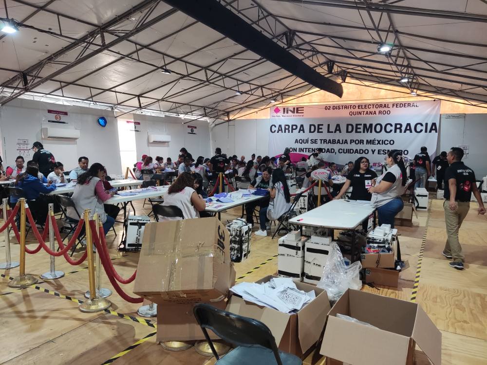 En este distrito correspondiente a la zona maya y el sur de Quintana Roo, ya se tenía un avance del 78 % de las casillas computadas, al corte de las 4 de la tarde, es decir, 22 horas después de iniciado el conteo de las votos marcados en las boletas, que deben ser cinco para ministras y cuatro para ministros en cada una.