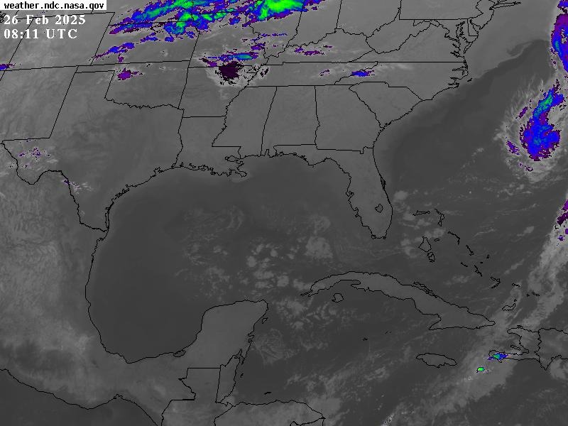Sinopsis Meteorológica: Masa de Aire Continental Polar Modificada localizada sobre el estado de Misisipi, EUA; afecta el Área del pronóstico, nos mantiene las temperaturas con vientos del norte y este, de 18 a 27 kph. Pronosticase una nueva masa de aire continental polar modificada con su Frente Frío débil para el próximo domingo, nos traerán un ligero descenso en las temperaturas con algunas lluvias y vientos de componente norte.