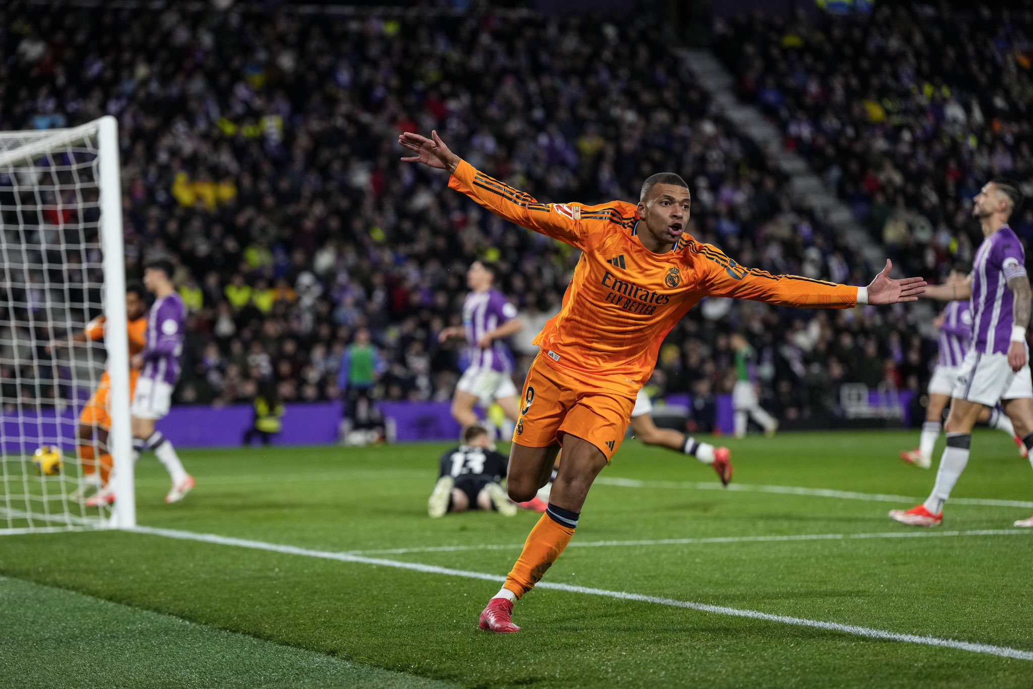 Kylian Mbappé fue, una vez más, la gran figura del Real Madrid, al marcar los tres goles para el triunfo 0-3 en su visita a Valladolid, con lo que el equipo merengue llega a 49 puntos y aumenta su ventaja a cuatro respecto al Atlético de Madrid, y siete frente al Barcelona, que juega el domingo.