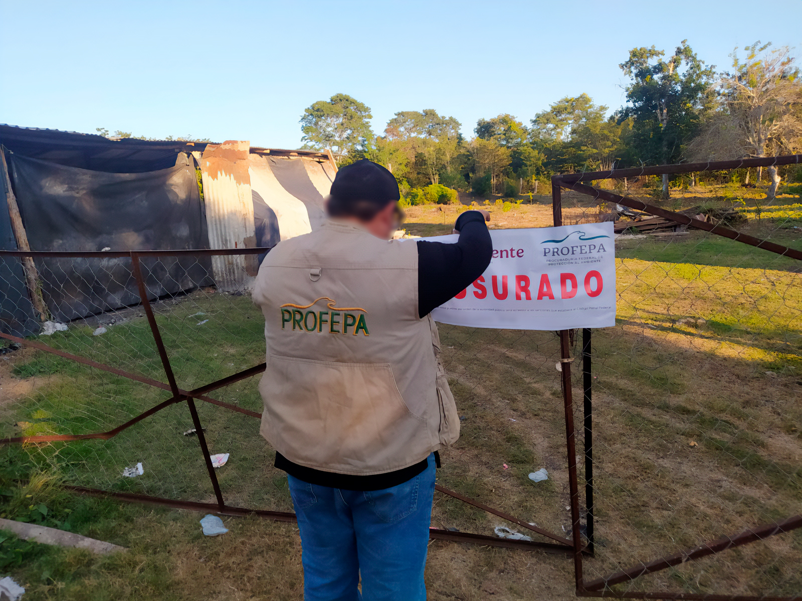 Asimismo, en Yucatán, en los municipios de Valladolid, Tekax y Progreso, se clausuraron dos predios con cambio de uso de suelo sin autorización, que corresponden a un banco de material pétreo que afectó una superficie de 4.114 hectáreas en el predio Sascabera los Fernández, así como un terreno de 15.5 hectáreas de selva mediana subcaducifolia en el ejido Mesatunich, donde se verificó la remoción de vegetación para actividades agrícolas.