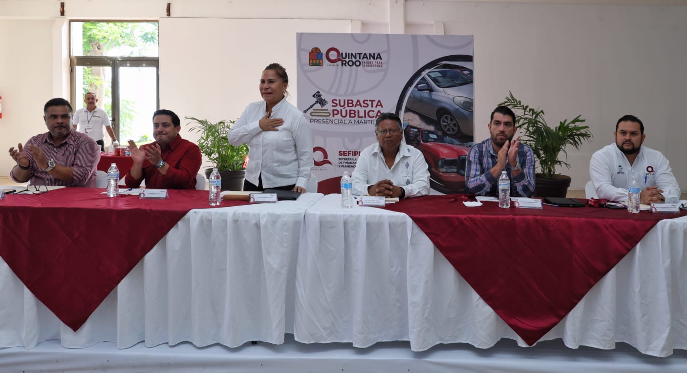 Martha Parroquín dio el martillazo inicial y destacó que con esta subasta de vehículos usados se cumple con el Nuevo Acuerdo por el Bienestar y Desarrollo de Quintana Roo, impulsado por la gobernadora Mara Lezama. Con estas acciones, el Gobierno del Estado reafirma su compromiso con un manejo honesto, transparente y eficiente de los bienes públicos, garantizando procesos abiertos a la ciudadanía y en estricto apego a la normatividad vigente.