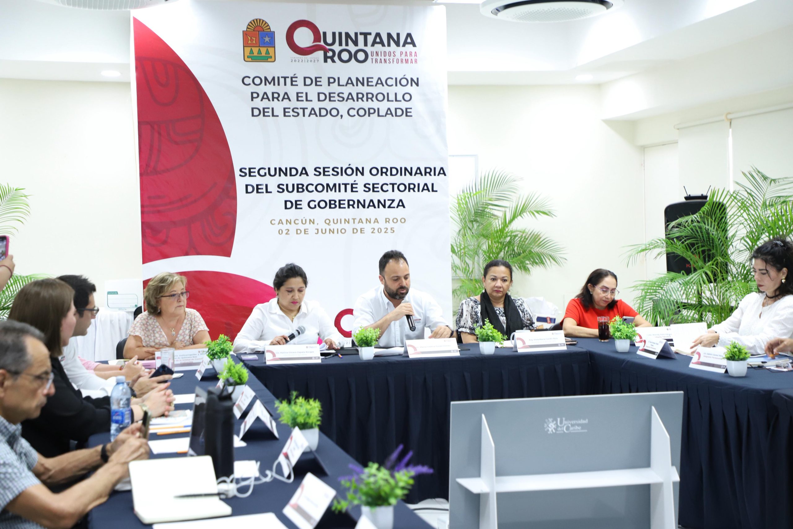 Cancún.- En cumplimiento de las Reglas de Operación y Funcionamiento del Comité de Planeación para el Desarrollo del Estado de Quintana Roo (COPLADE), se realizó la Segunda Sesión Ordinaria del Subcomité Sectorial de Gobernanza 2025 en esta ciudad.
