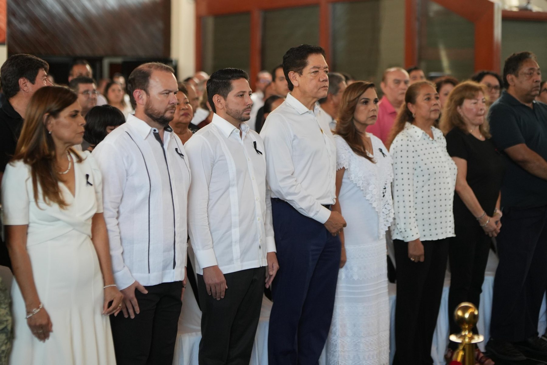 CHETUMAL, 15 de septiembre.- Los poderes Ejecutivo, Legislativo y Judicial de la entidad realizaron este lunes una ceremonia luctuosa oficial para honrar la vida y memoria de Jesús Martínez Ross, el primer gobernador constitucional de Quintana Roo, con homenaje de cuerpo presente efectuado en el vestíbulo mural del Congreso del Estado.