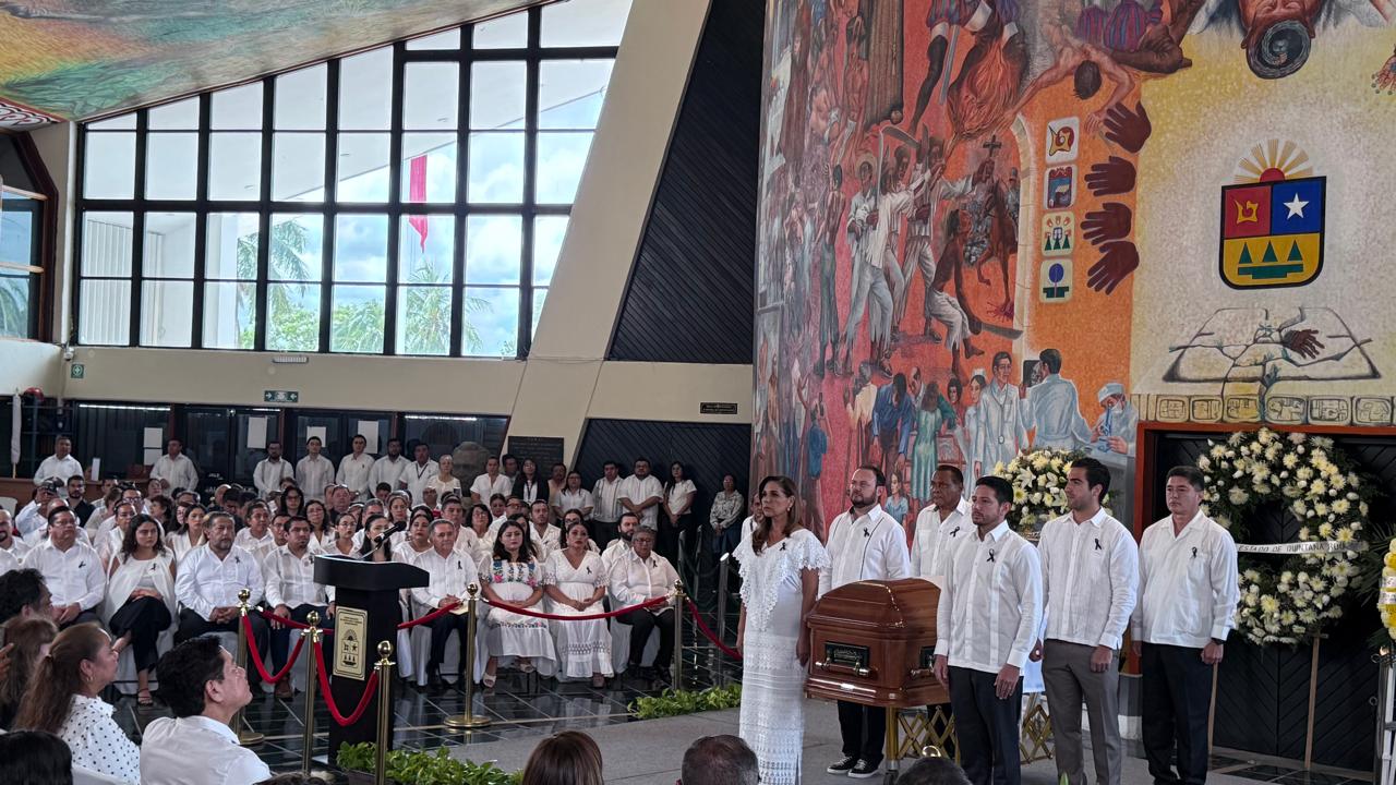 Al finalizar la ceremonia luctuosa oficial, la familia del exgobernador recibió la Bandera de Quintana Roo que fue colocada sobre el féretro en este homenaje, de manos de la gobernadora del estado, y continuó con sus funerales con una misa de cuerpo presente en la iglesia del Sagrado Corazón de Jesús, considerada la catedral de Chetumal, para culminar con las exequias.