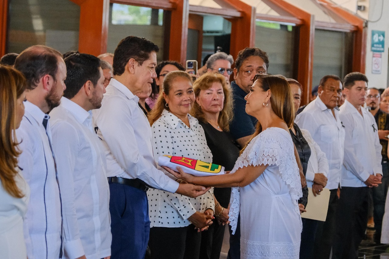 Luego, siguieron la presidenta del Sistema DIF estatal, Verónica Lezama Espinosa; la presidenta municipal de Othón P. Blanco, Yensunni Martínez Hernández; y los autores de la letra y la música del Himno a Quintana Roo, Ramón Iván Suárez Caamal y Marcos Ramírez Canul, respectivamente.