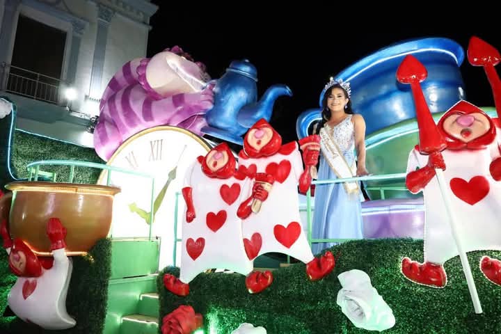 El de los Reyes Infantiles, Alexa Altair Aguilar Aguilar y Francisco Soberanis Mis, muestra a detalle la historia de “La Fábrica de Chocolates”. Mientras que el de la Reina de la Diversidad, Ámbar Sofía Dzul Poot, remontará a los asistentes a “El País de las Maravillas”.