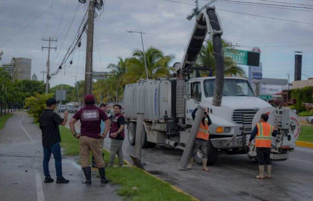 Autoridades municipales de Benito Juárez iniciaron este martes trabajos de mantenimiento en depósitos de absorción y pozos profundos de la ciudad, como medida preventiva ante las lluvias que se esperan en las próximas 72 horas.