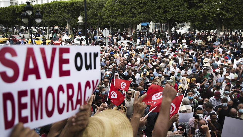 Cientos de personas en Túnez protestaron este miércoles en la capital del país contra el gobierno del presidente Kais Saied, al cual calificaron de “régimen autoritario”, mientras seis opositores iniciaron una huelga de hambre en prisión.